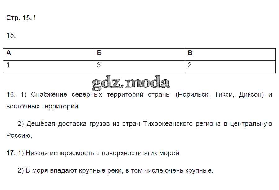 ГДЗ решение к заданию № 15 География 8 класс рабочая тетрадь География России Баринова И.И. Дрофа 2018 ФГОС бесплатно на гдз.мода!