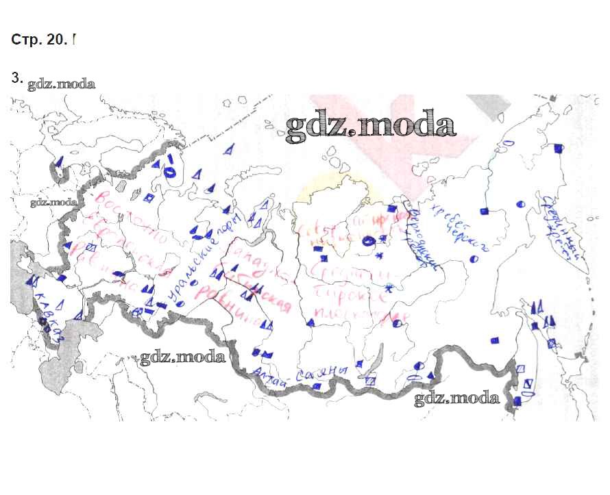 ГДЗ решение к заданию № 20 География 8 класс рабочая тетрадь География России Баринова И.И. Дрофа 2018 ФГОС бесплатно на гдз.мода!
