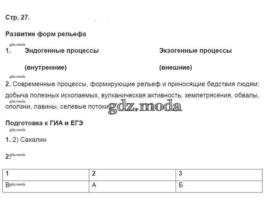 ОТВЕТ на задание № 27 Рабочая тетрадь по Географии 8 класс Баринова УМК