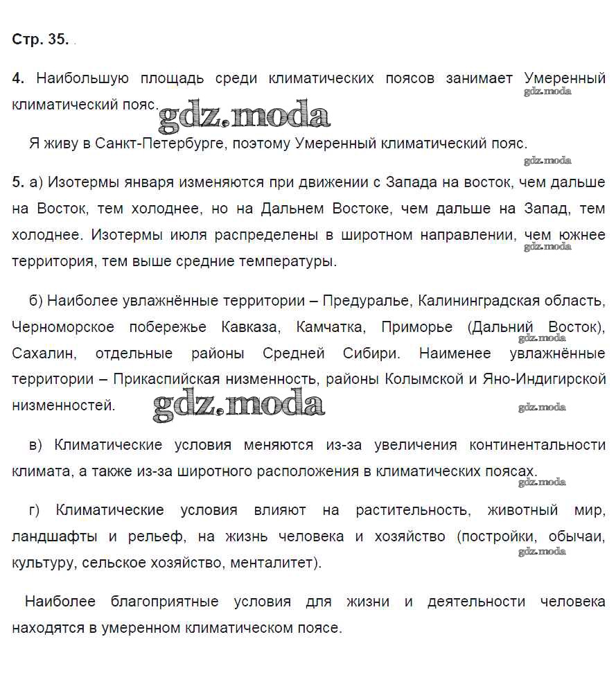 ГДЗ решение к заданию № 35 География 8 класс рабочая тетрадь География России Баринова И.И. Дрофа 2018 ФГОС бесплатно на гдз.мода!