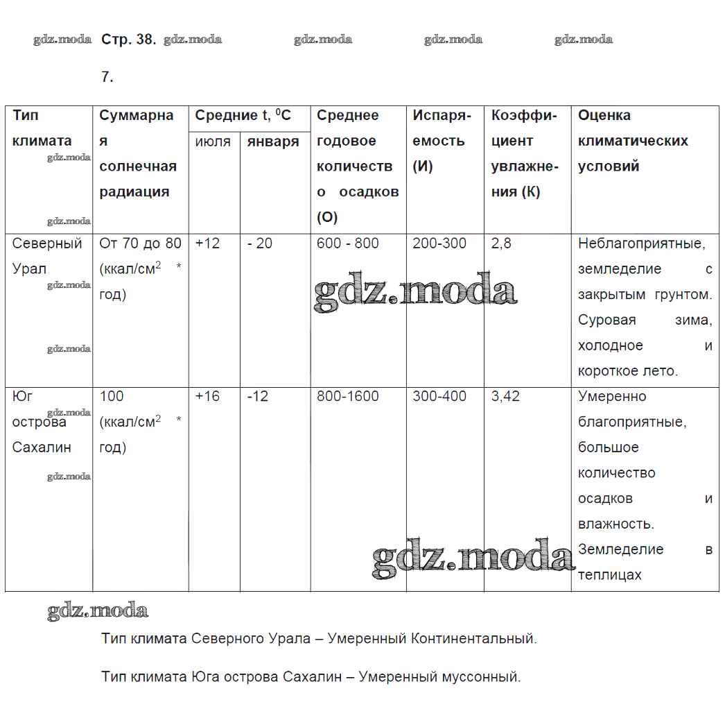 ГДЗ решение к заданию № 38 География 8 класс рабочая тетрадь География России Баринова И.И. Дрофа 2018 ФГОС бесплатно на гдз.мода!