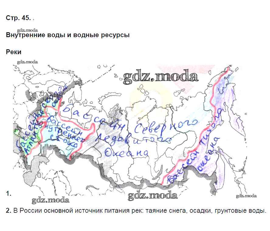ГДЗ решение к заданию № 45 География 8 класс рабочая тетрадь География России Баринова И.И. Дрофа 2018 ФГОС бесплатно на гдз.мода!