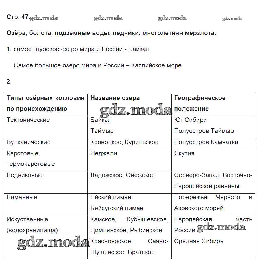 ГДЗ решение к заданию № 47 География 8 класс рабочая тетрадь География России Баринова И.И. Дрофа 2018 ФГОС бесплатно на гдз.мода!