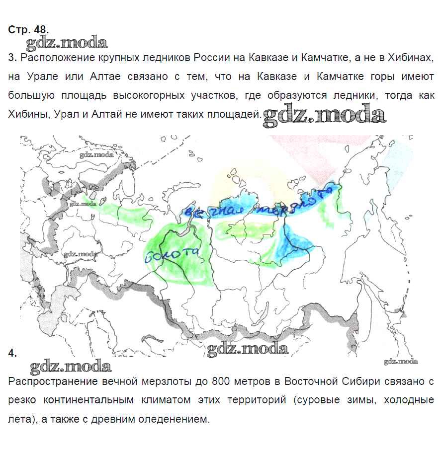 ГДЗ решение к заданию № 48 География 8 класс рабочая тетрадь География России Баринова И.И. Дрофа 2018 ФГОС бесплатно на гдз.мода!