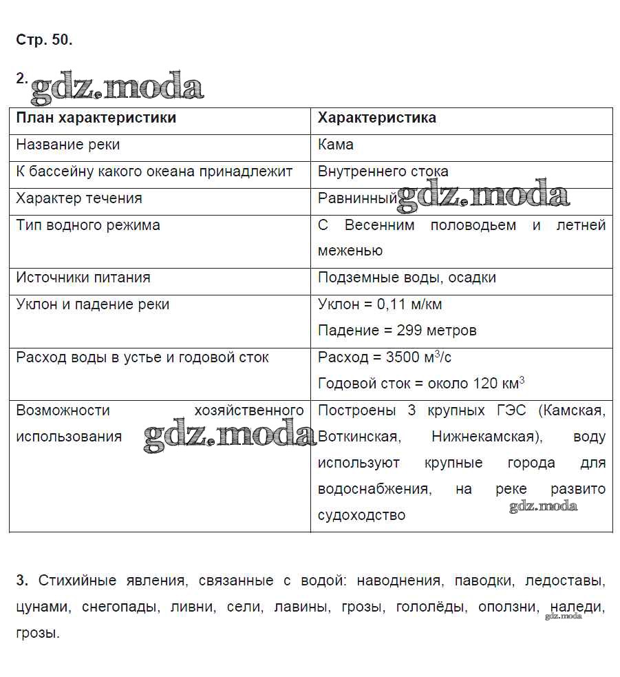 ГДЗ решение к заданию № 50 География 8 класс рабочая тетрадь География России Баринова И.И. Дрофа 2018 ФГОС бесплатно на гдз.мода!