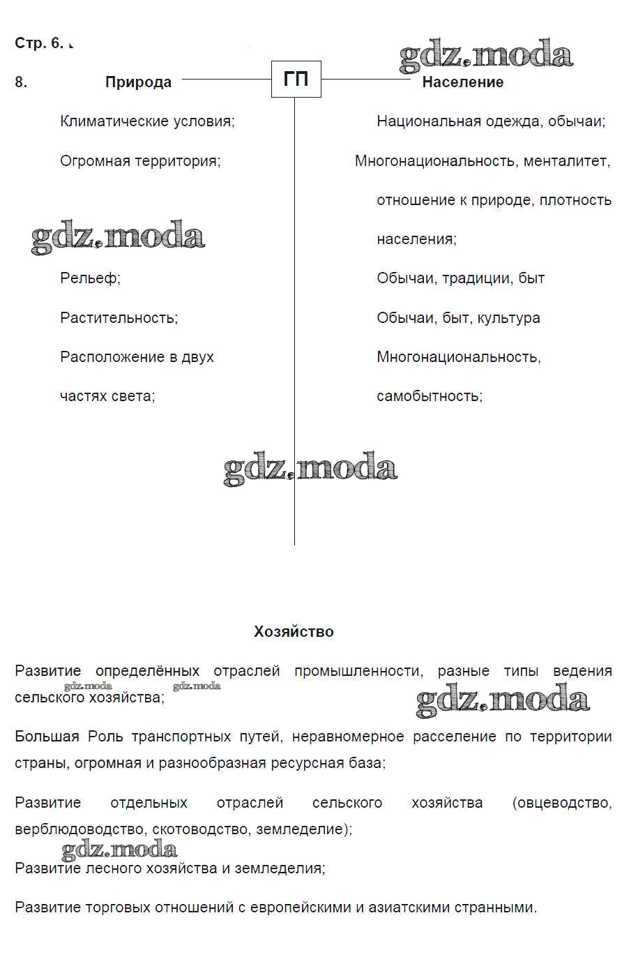 ГДЗ решение к заданию № 6 География 8 класс рабочая тетрадь География России Баринова И.И. Дрофа 2018 ФГОС бесплатно на гдз.мода!