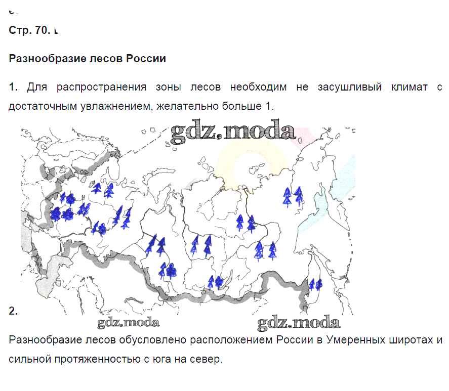 ГДЗ решение к заданию № 70 География 8 класс рабочая тетрадь География России Баринова И.И. Дрофа 2018 ФГОС бесплатно на гдз.мода!