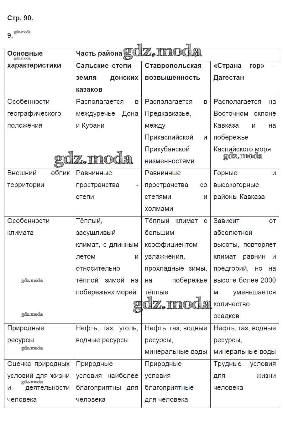 ГДЗ решение к заданию № 90 География 8 класс рабочая тетрадь География России Баринова И.И. Дрофа 2018 ФГОС бесплатно на гдз.мода!