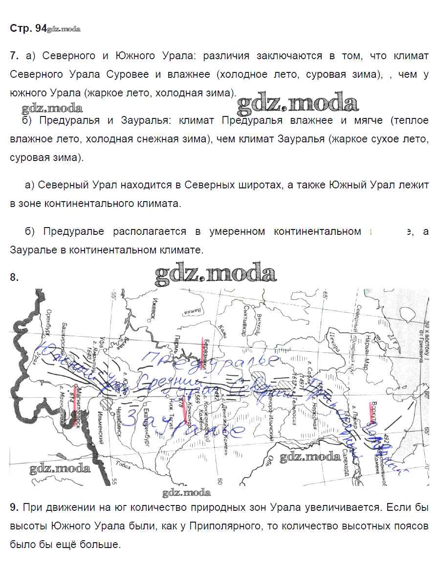 ГДЗ решение к заданию № 94 География 8 класс рабочая тетрадь География России Баринова И.И. Дрофа 2018 ФГОС бесплатно на гдз.мода!