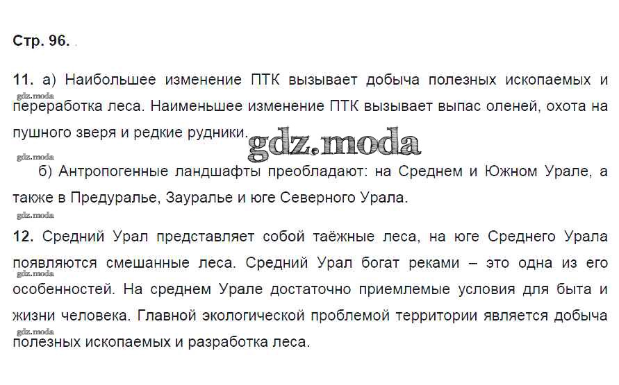 ГДЗ решение к заданию № 96 География 8 класс рабочая тетрадь География России Баринова И.И. Дрофа 2018 ФГОС бесплатно на гдз.мода!