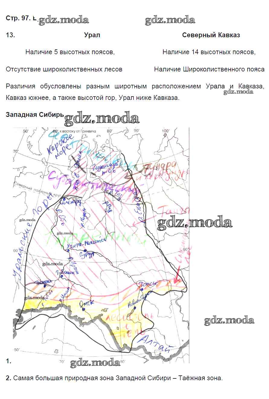 ГДЗ решение к заданию № 97 География 8 класс рабочая тетрадь География России Баринова И.И. Дрофа 2018 ФГОС бесплатно на гдз.мода!