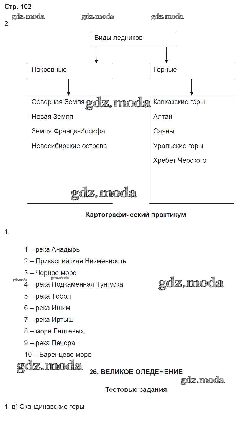 ГДЗ решение к заданию № 102 География 8 класс рабочая тетрадь Домогацких Е.М. Русское слово 2017 Часть 1, Часть 2 ФГОС бесплатно на гдз.мода!