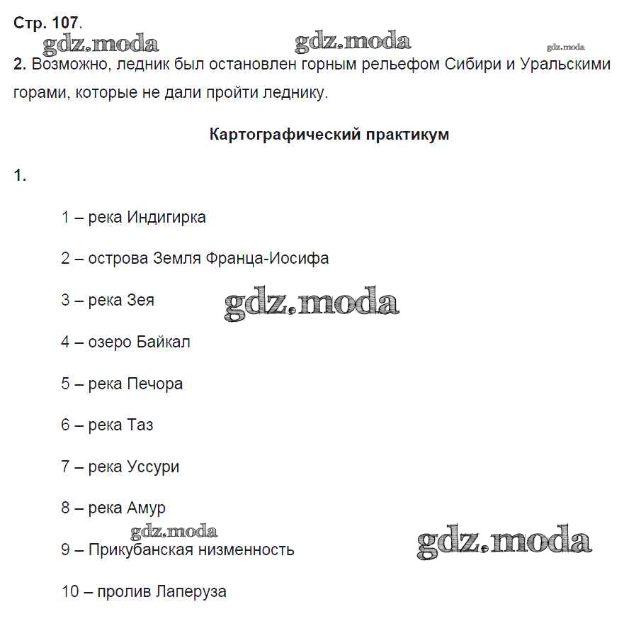 ГДЗ решение к заданию № 107 География 8 класс рабочая тетрадь Домогацких Е.М. Русское слово 2017 Часть 1, Часть 2 ФГОС бесплатно на гдз.мода!
