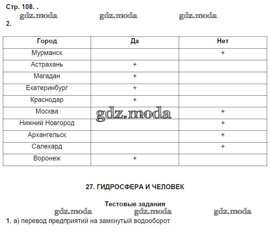 ГДЗ решение к заданию № 108 География 8 класс рабочая тетрадь Домогацких Е.М. Русское слово 2017 Часть 1, Часть 2 ФГОС бесплатно на гдз.мода!