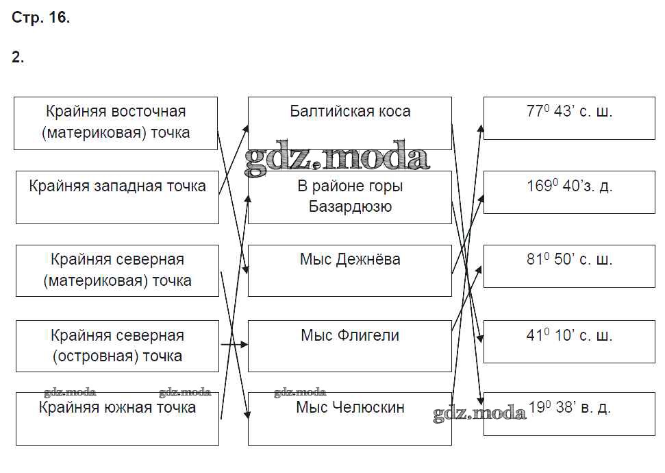ГДЗ решение к заданию № 16 География 8 класс рабочая тетрадь Домогацких Е.М. Русское слово 2017 Часть 1, Часть 2 ФГОС бесплатно на гдз.мода!