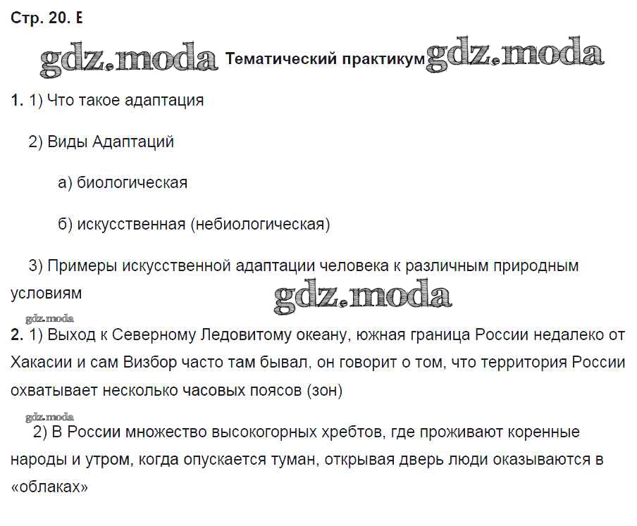 ГДЗ решение к заданию № 20 География 8 класс рабочая тетрадь Домогацких Е.М. Русское слово 2017 Часть 1, Часть 2 ФГОС бесплатно на гдз.мода!