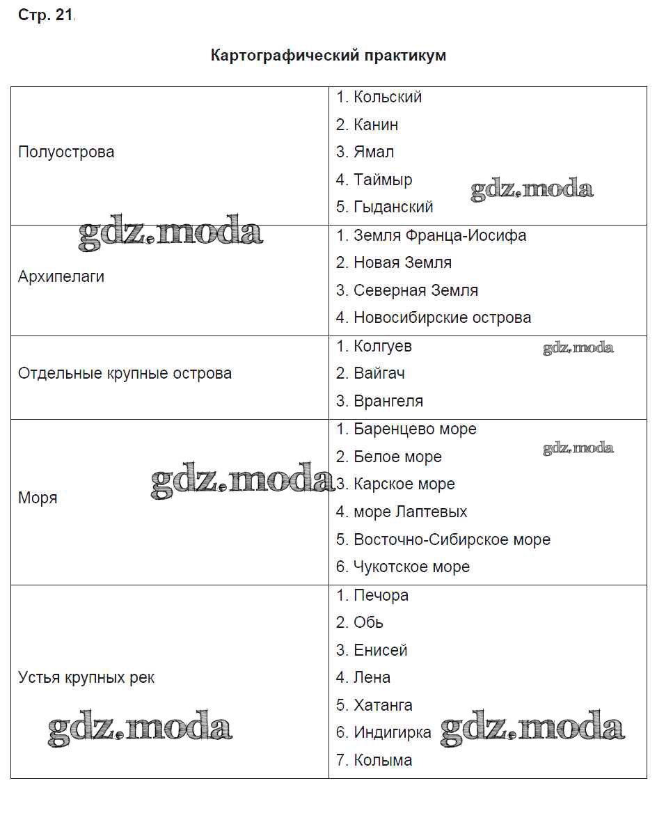 ГДЗ решение к заданию № 21 География 8 класс рабочая тетрадь Домогацких Е.М. Русское слово 2017 Часть 1, Часть 2 ФГОС бесплатно на гдз.мода!