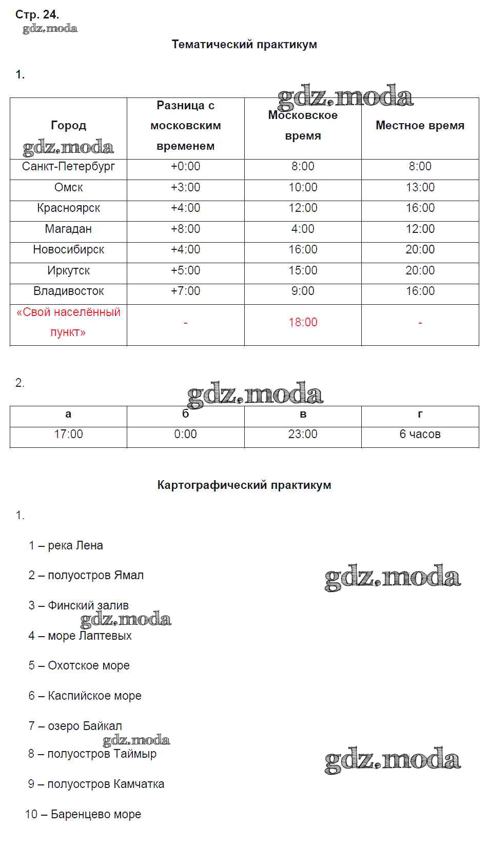 ГДЗ решение к заданию № 24 География 8 класс рабочая тетрадь Домогацких Е.М. Русское слово 2017 Часть 1, Часть 2 ФГОС бесплатно на гдз.мода!