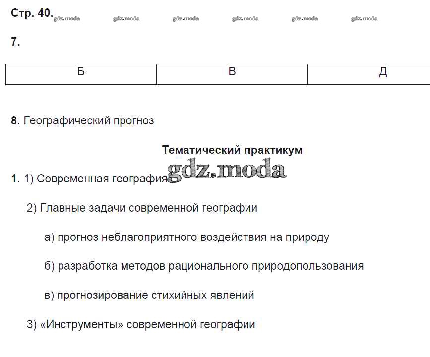 ГДЗ решение к заданию № 40 География 8 класс рабочая тетрадь Домогацких Е.М. Русское слово 2017 Часть 1, Часть 2 ФГОС бесплатно на гдз.мода!