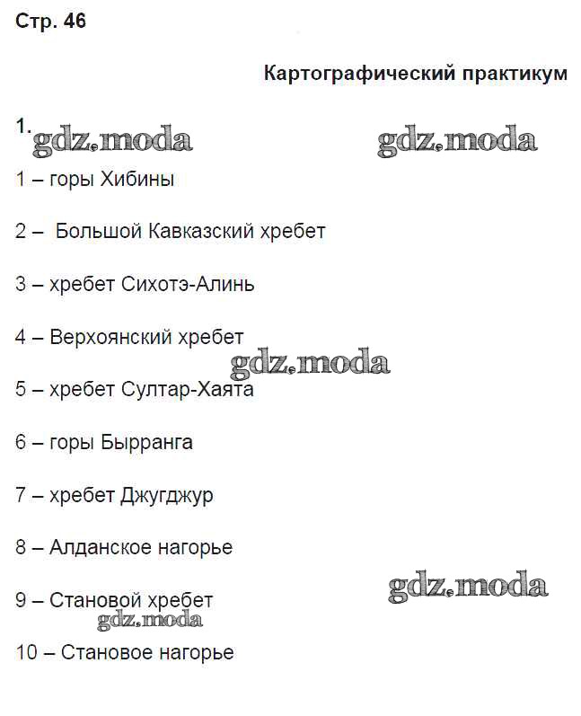 ГДЗ решение к заданию № 46 География 8 класс рабочая тетрадь Домогацких Е.М. Русское слово 2017 Часть 1, Часть 2 ФГОС бесплатно на гдз.мода!