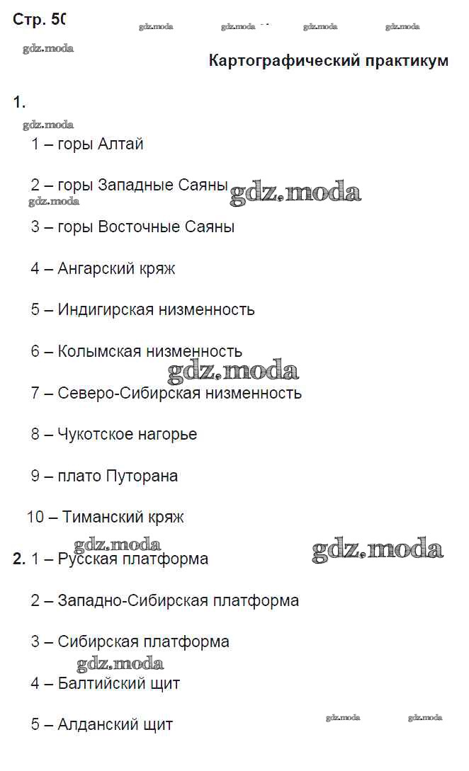 ГДЗ решение к заданию № 50 География 8 класс рабочая тетрадь Домогацких Е.М. Русское слово 2017 Часть 1, Часть 2 ФГОС бесплатно на гдз.мода!