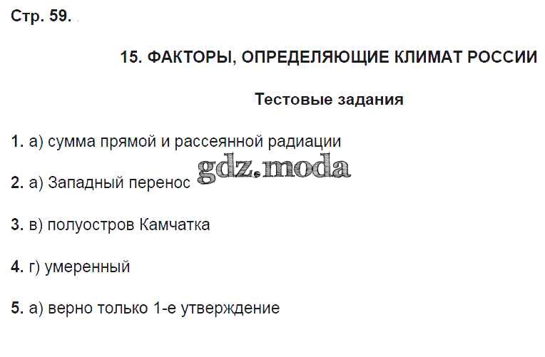 ГДЗ решение к заданию № 59 География 8 класс рабочая тетрадь Домогацких Е.М. Русское слово 2017 Часть 1, Часть 2 ФГОС бесплатно на гдз.мода!