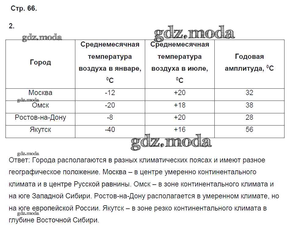 ГДЗ решение к заданию № 66 География 8 класс рабочая тетрадь Домогацких Е.М. Русское слово 2017 Часть 1, Часть 2 ФГОС бесплатно на гдз.мода!