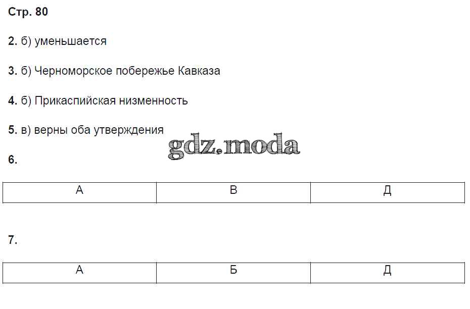 ГДЗ решение к заданию № 80 География 8 класс рабочая тетрадь Домогацких Е.М. Русское слово 2017 Часть 1, Часть 2 ФГОС бесплатно на гдз.мода!
