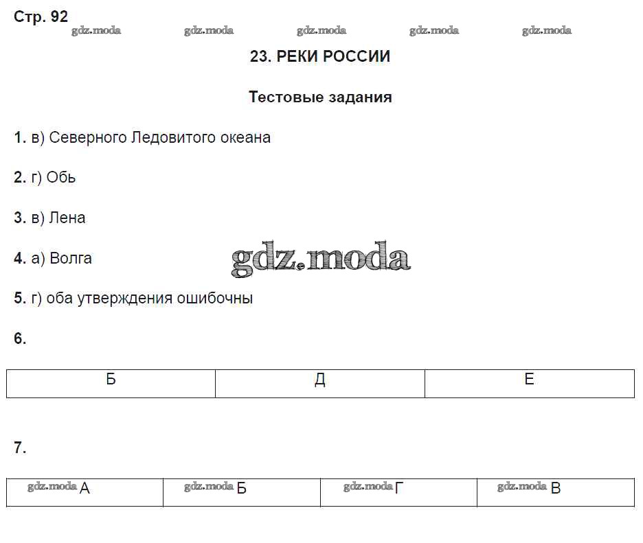 ГДЗ решение к заданию № 92 География 8 класс рабочая тетрадь Домогацких Е.М. Русское слово 2017 Часть 1, Часть 2 ФГОС бесплатно на гдз.мода!