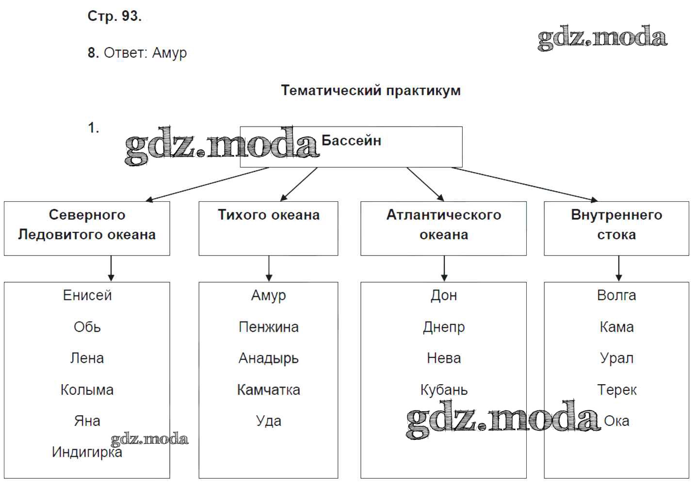 ГДЗ решение к заданию № 93 География 8 класс рабочая тетрадь Домогацких Е.М. Русское слово 2017 Часть 1, Часть 2 ФГОС бесплатно на гдз.мода!