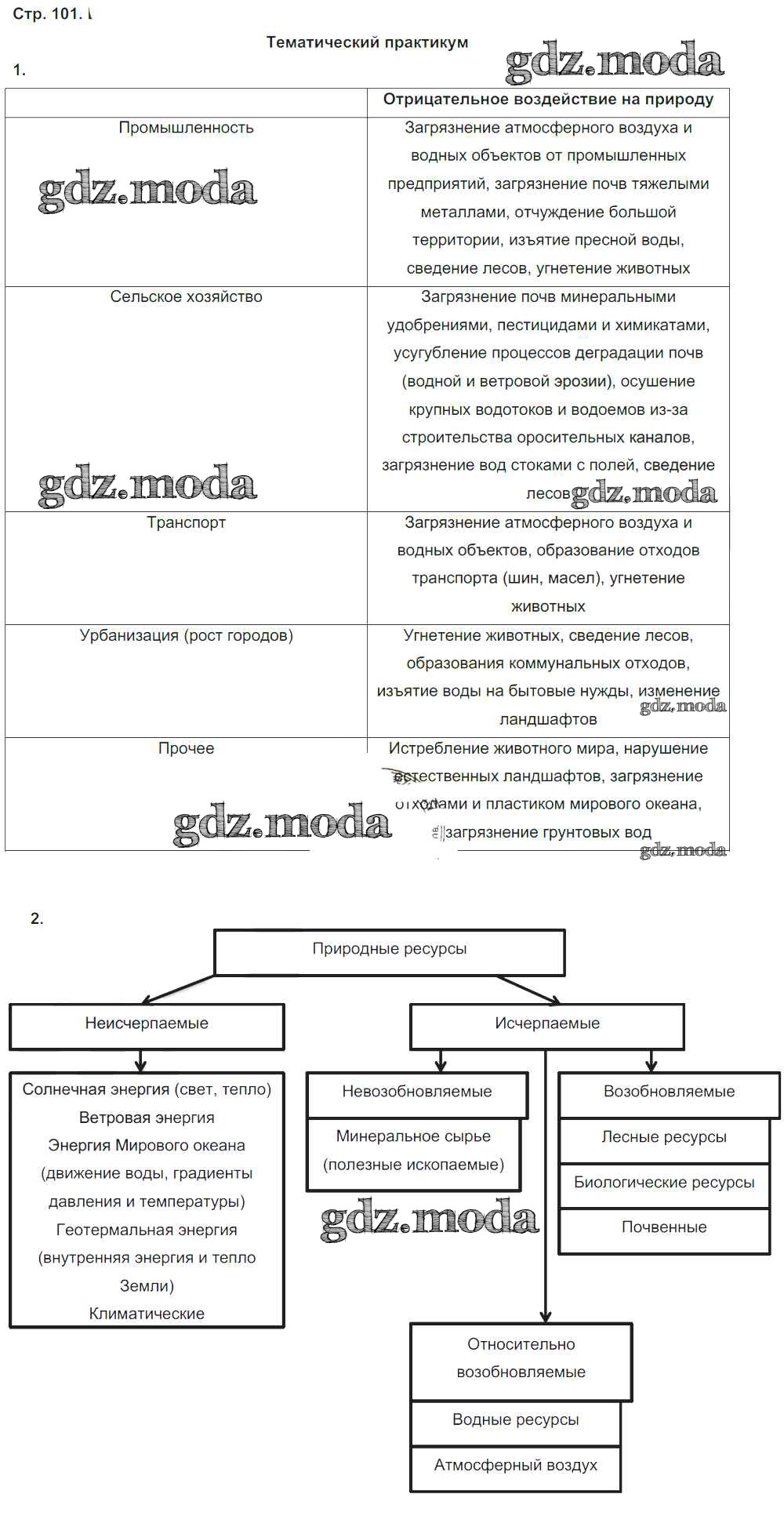 ГДЗ решение к заданию № 101 География 8 класс рабочая тетрадь Домогацких Е.М. Русское слово 2017 Часть 1, Часть 2 ФГОС бесплатно на гдз.мода!