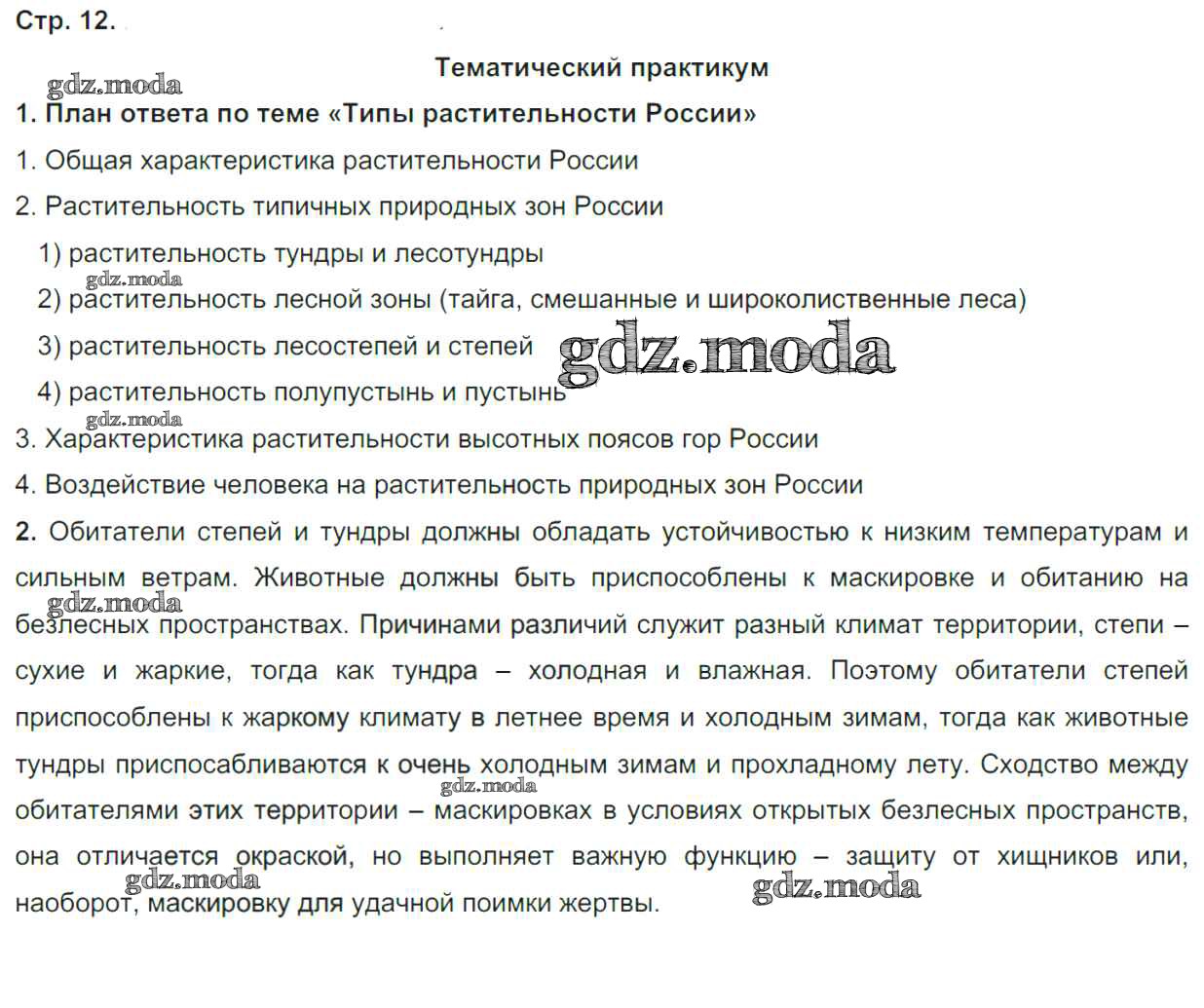 ГДЗ решение к заданию № 12 География 8 класс рабочая тетрадь Домогацких Е.М. Русское слово 2017 Часть 1, Часть 2 ФГОС бесплатно на гдз.мода!