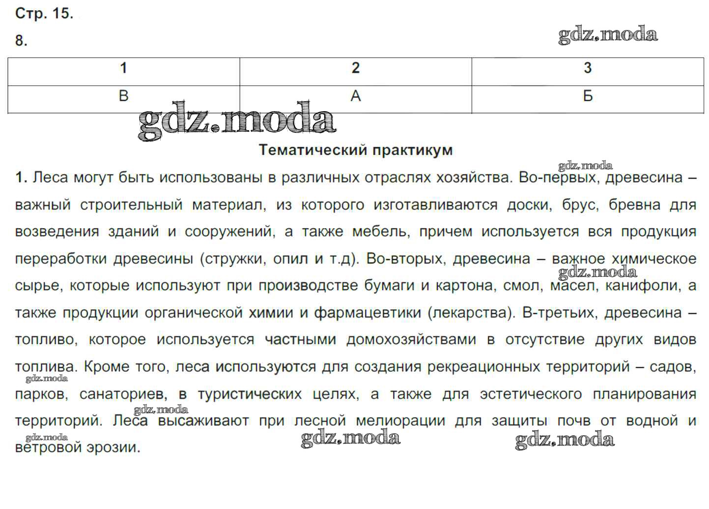 ГДЗ решение к заданию № 15 География 8 класс рабочая тетрадь Домогацких Е.М. Русское слово 2017 Часть 1, Часть 2 ФГОС бесплатно на гдз.мода!