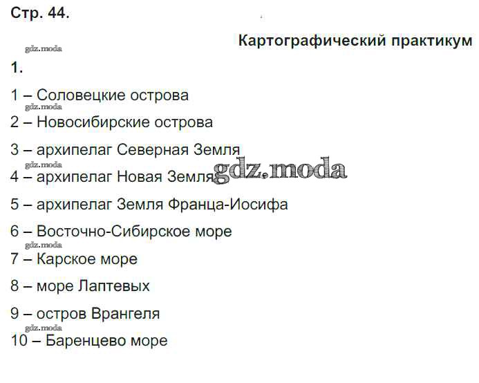 ГДЗ решение к заданию № 44 География 8 класс рабочая тетрадь Домогацких Е.М. Русское слово 2017 Часть 1, Часть 2 ФГОС бесплатно на гдз.мода!