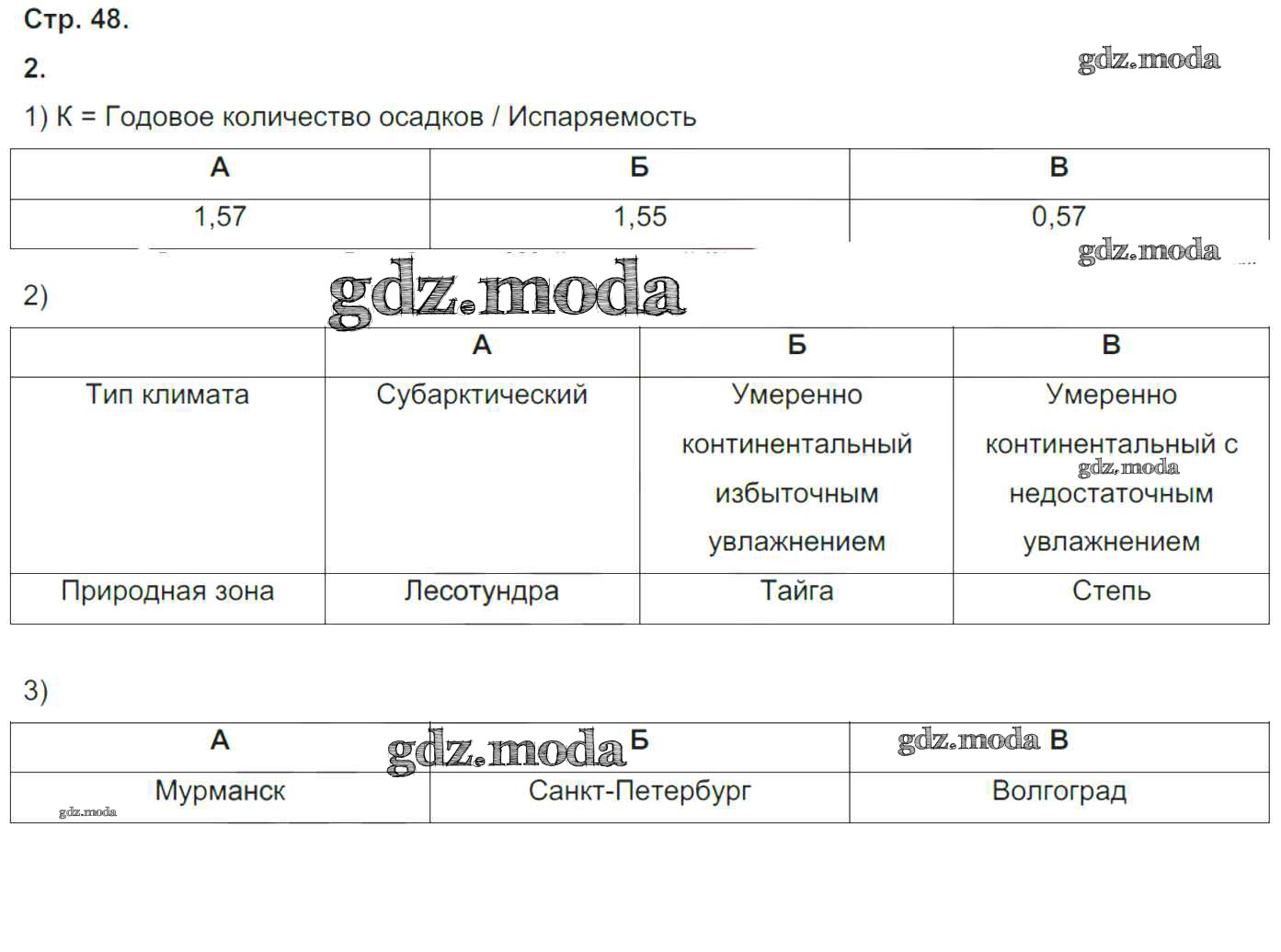 ГДЗ решение к заданию № 48 География 8 класс рабочая тетрадь Домогацких Е.М. Русское слово 2017 Часть 1, Часть 2 ФГОС бесплатно на гдз.мода!