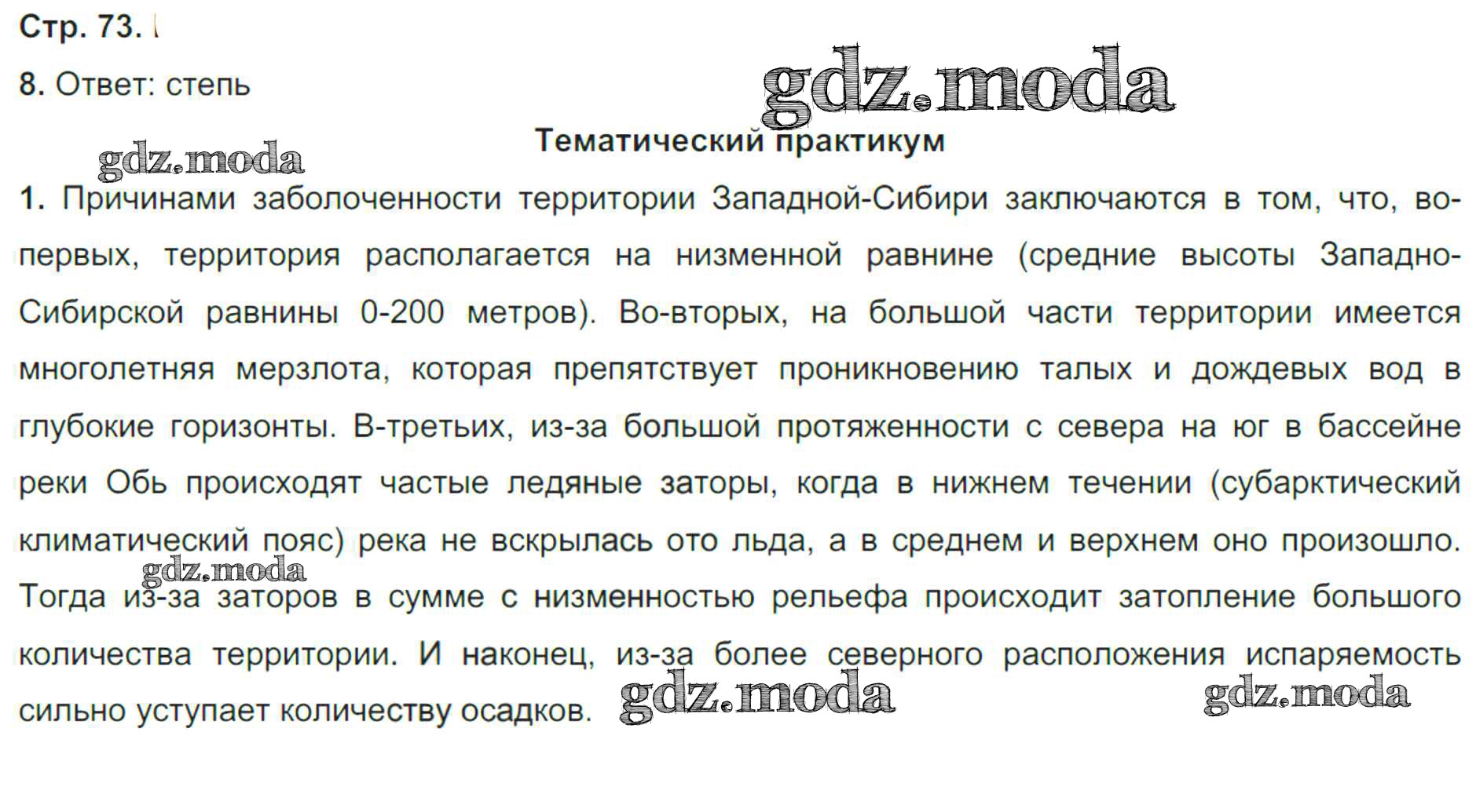 ГДЗ решение к заданию № 73 География 8 класс рабочая тетрадь Домогацких Е.М. Русское слово 2017 Часть 1, Часть 2 ФГОС бесплатно на гдз.мода!
