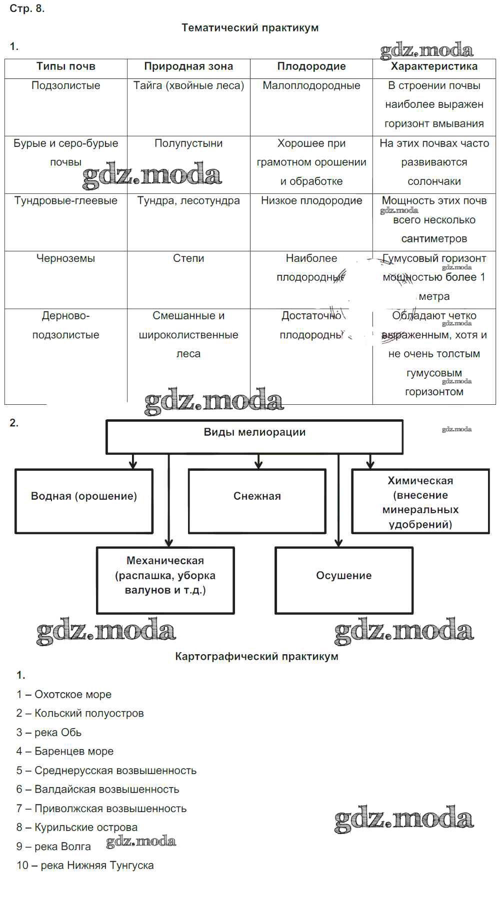 ГДЗ решение к заданию № 8 География 8 класс рабочая тетрадь Домогацких Е.М. Русское слово 2017 Часть 1, Часть 2 ФГОС бесплатно на гдз.мода!