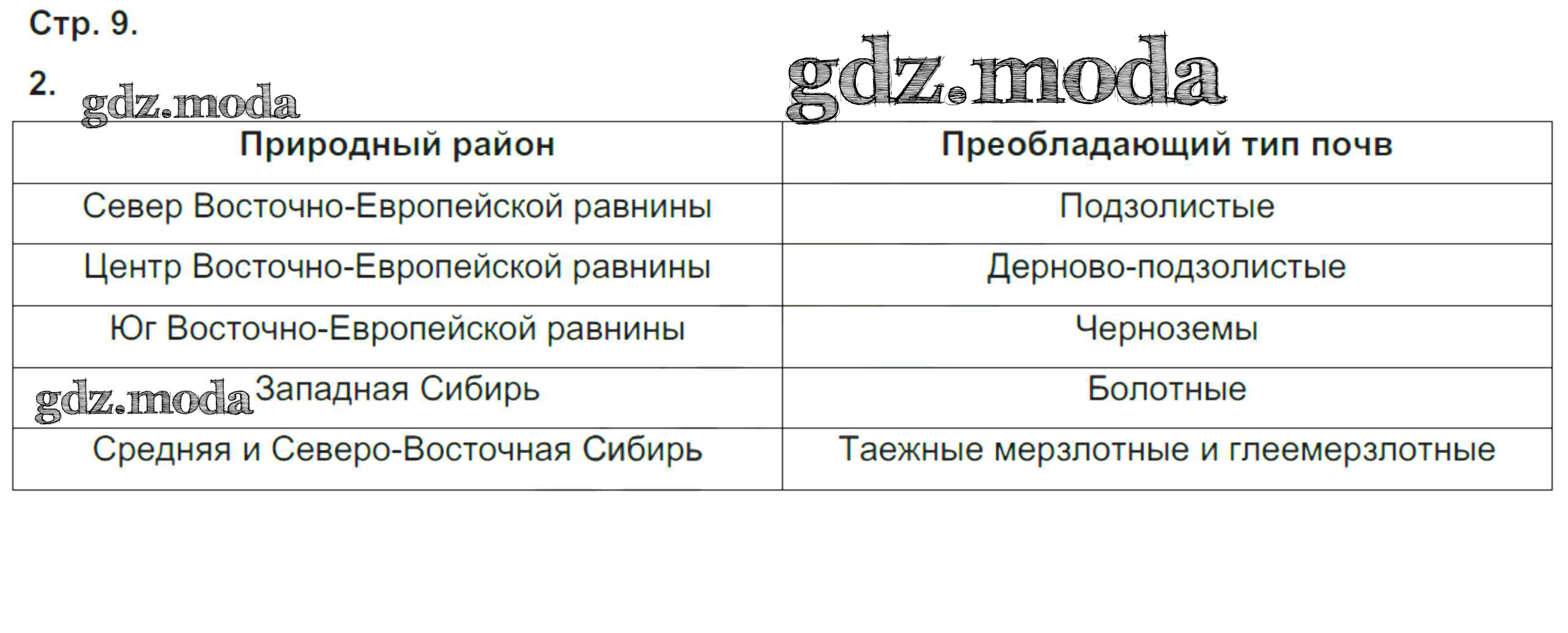 ГДЗ решение к заданию № 9 География 8 класс рабочая тетрадь Домогацких Е.М. Русское слово 2017 Часть 1, Часть 2 ФГОС бесплатно на гдз.мода!