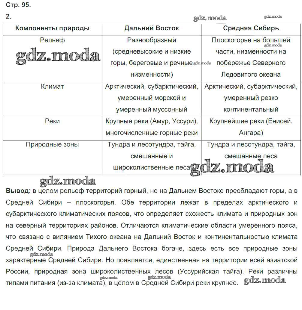 ГДЗ решение к заданию № 95 География 8 класс рабочая тетрадь Домогацких Е.М. Русское слово 2017 Часть 1, Часть 2 ФГОС бесплатно на гдз.мода!