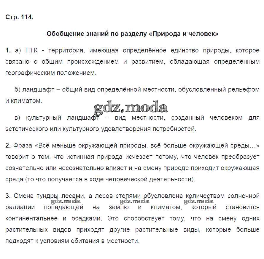 ГДЗ решение к заданию № 114 География 8 класс рабочая тетрадь Ким Э.В. Дрофа 2016 ФГОС бесплатно на гдз.мода!