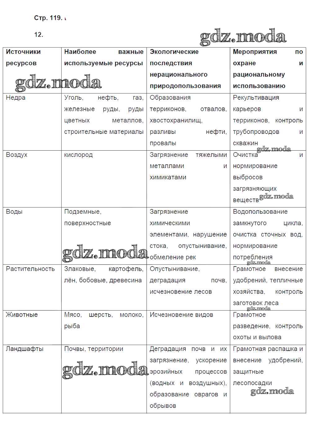 ГДЗ решение к заданию № 119 География 8 класс рабочая тетрадь Ким Э.В. Дрофа 2016 ФГОС бесплатно на гдз.мода!