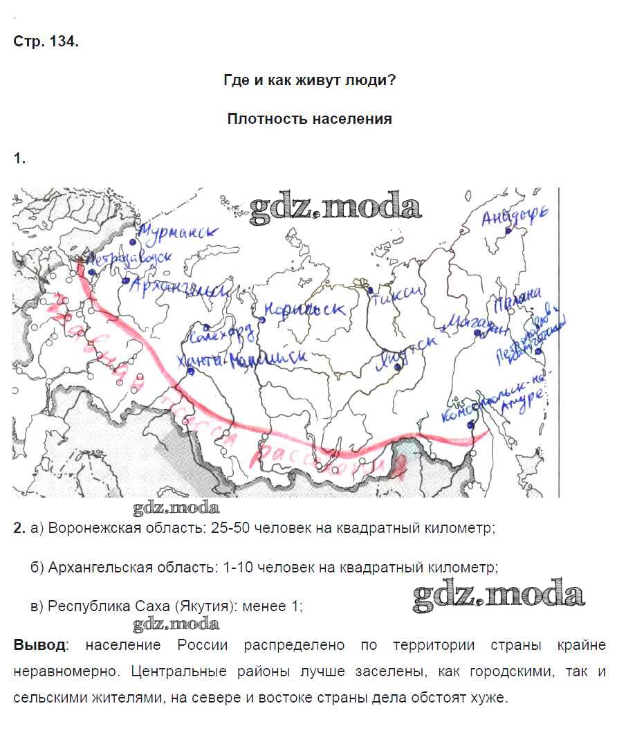ГДЗ решение к заданию № 134 География 8 класс рабочая тетрадь Ким Э.В. Дрофа 2016 ФГОС бесплатно на гдз.мода!