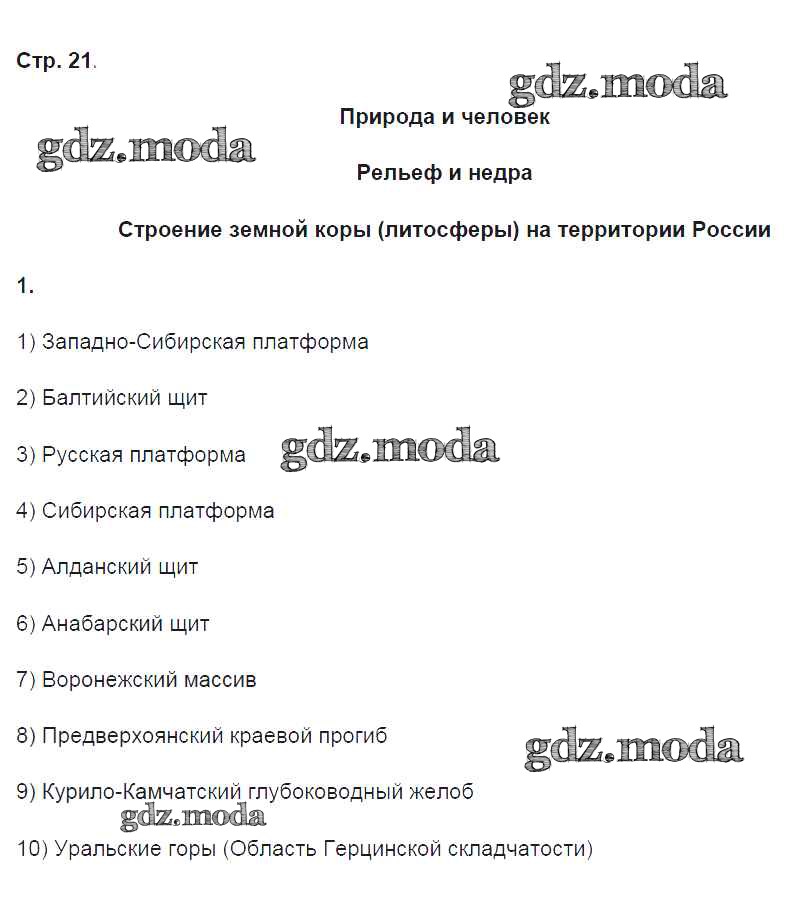 ГДЗ решение к заданию № 21 География 8 класс рабочая тетрадь Ким Э.В. Дрофа 2016 ФГОС бесплатно на гдз.мода!