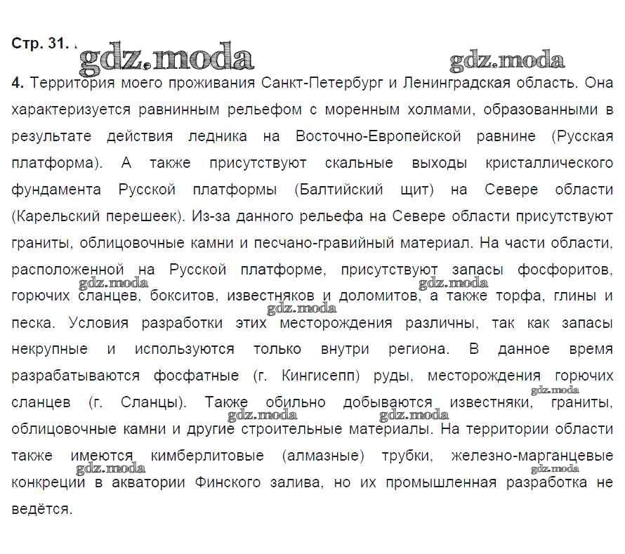 ГДЗ решение к заданию № 31 География 8 класс рабочая тетрадь Ким Э.В. Дрофа 2016 ФГОС бесплатно на гдз.мода!