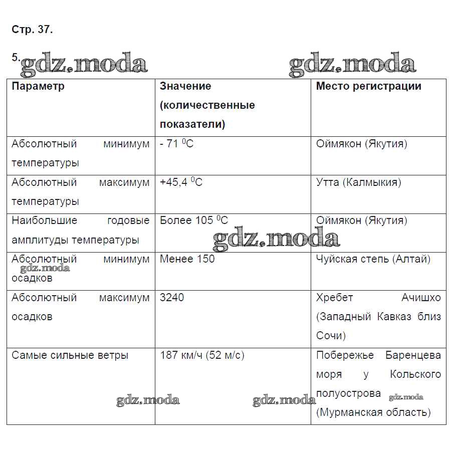 ГДЗ решение к заданию № 37 География 8 класс рабочая тетрадь Ким Э.В. Дрофа 2016 ФГОС бесплатно на гдз.мода!