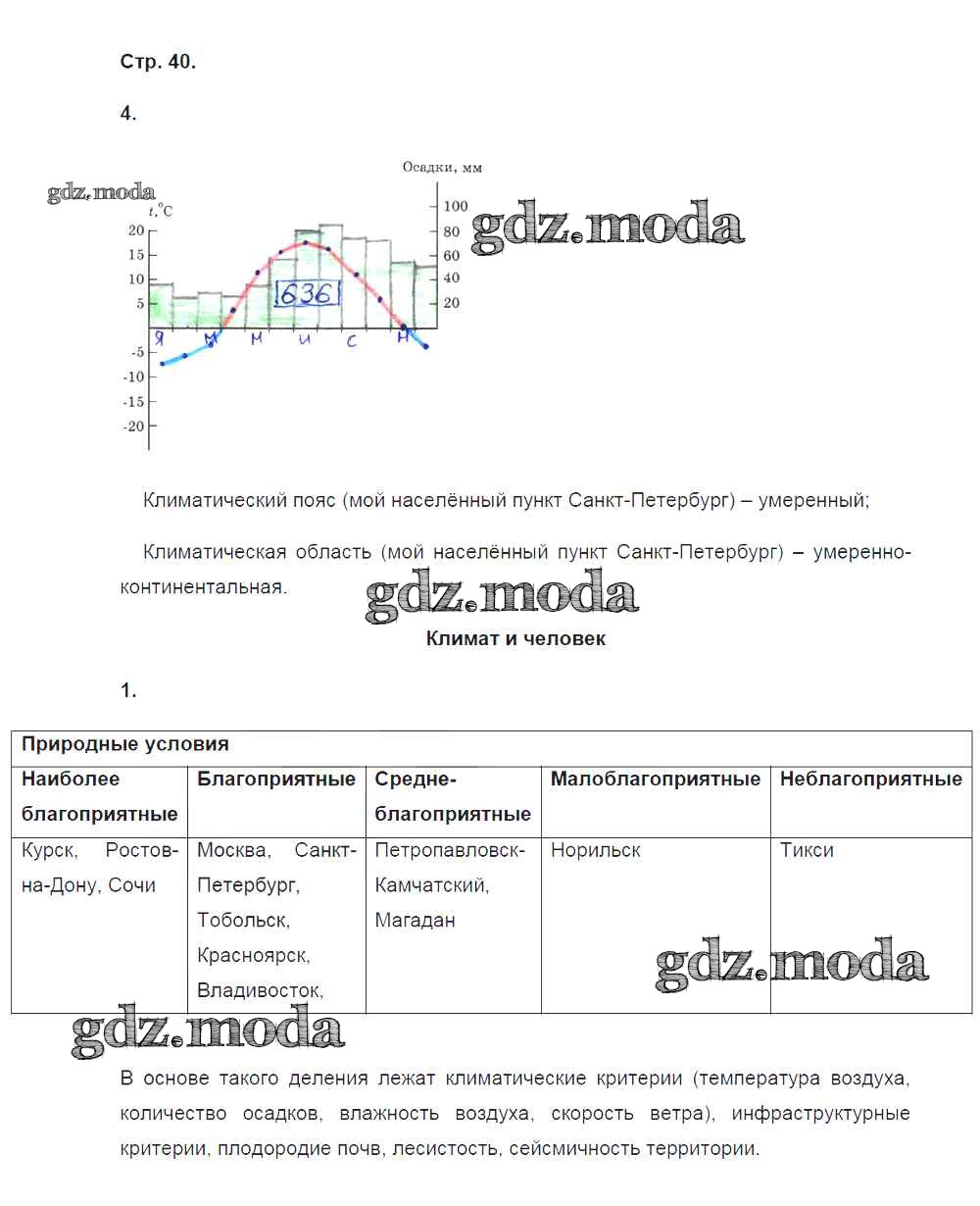 ГДЗ решение к заданию № 40 География 8 класс рабочая тетрадь Ким Э.В. Дрофа 2016 ФГОС бесплатно на гдз.мода!