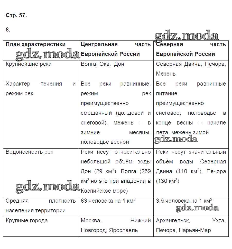 ГДЗ решение к заданию № 57 География 8 класс рабочая тетрадь Ким Э.В. Дрофа 2016 ФГОС бесплатно на гдз.мода!