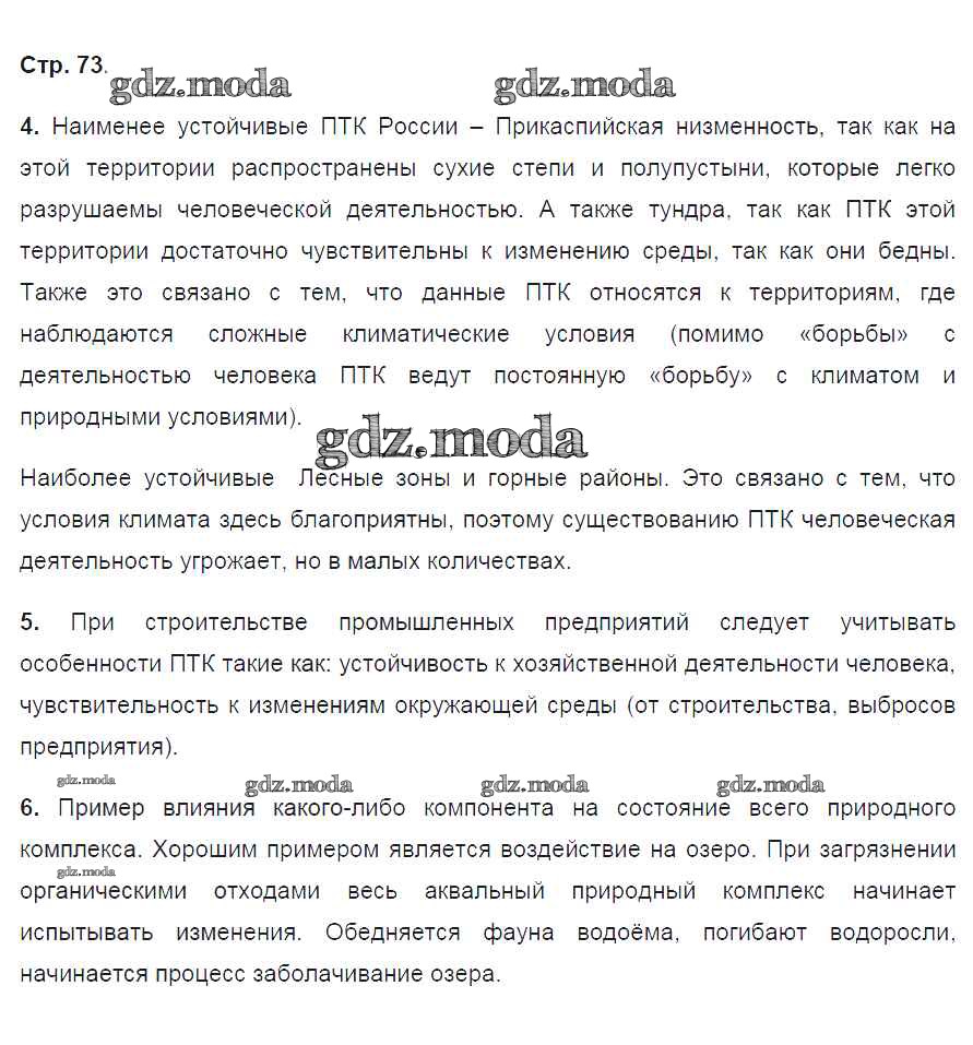 ГДЗ решение к заданию № 73 География 8 класс рабочая тетрадь Ким Э.В. Дрофа 2016 ФГОС бесплатно на гдз.мода!