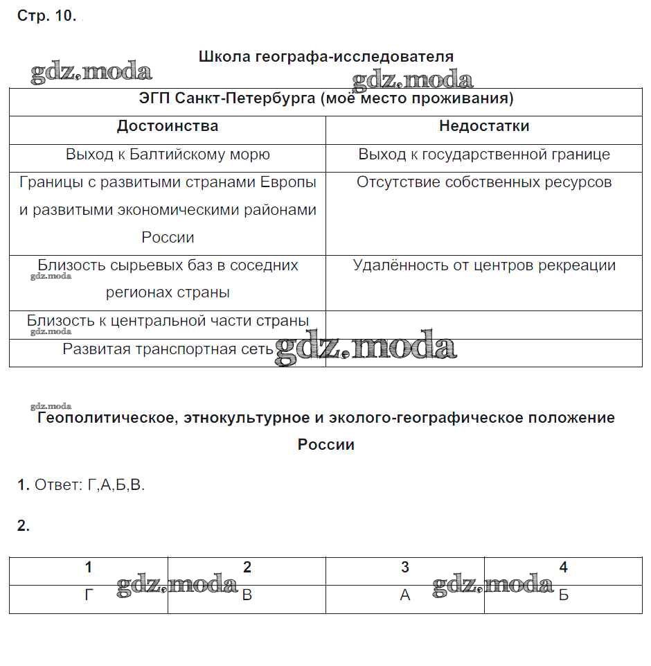 ГДЗ решение к заданию № 10 География 8 класс рабочая тетрадь Пятунин В.Б. Вентана-граф 2017 Часть 1, Часть 2 ФГОС бесплатно на гдз.мода!
