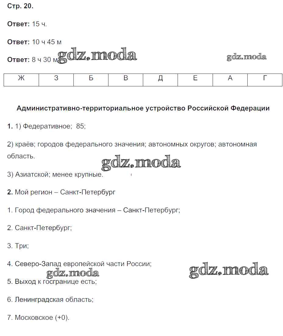 ГДЗ решение к заданию № 20 География 8 класс рабочая тетрадь Пятунин В.Б. Вентана-граф 2017 Часть 1, Часть 2 ФГОС бесплатно на гдз.мода!